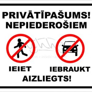 • Privātīpašums ieiet, iebraukt aizliegts ar zīmēm