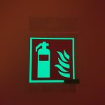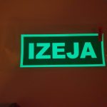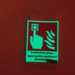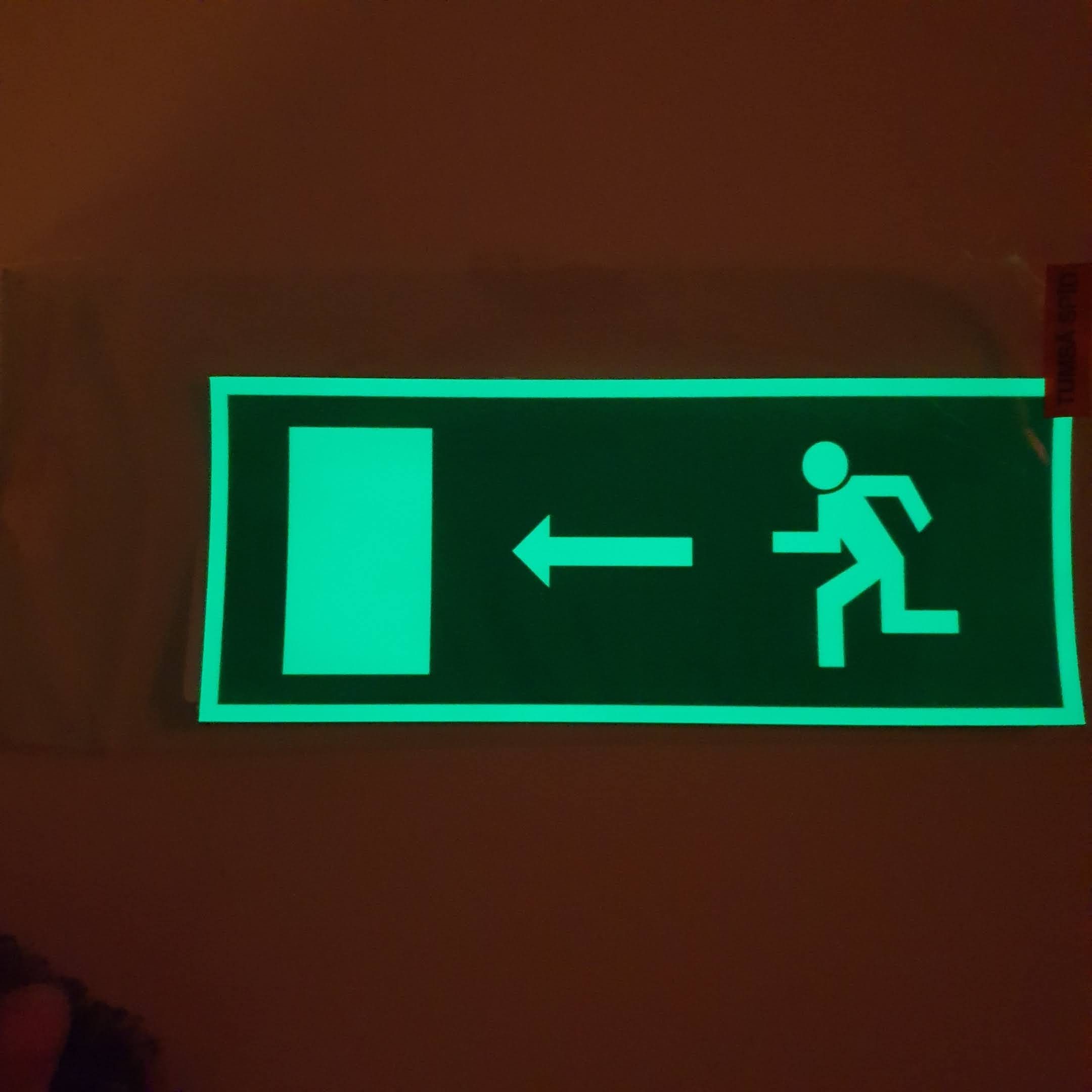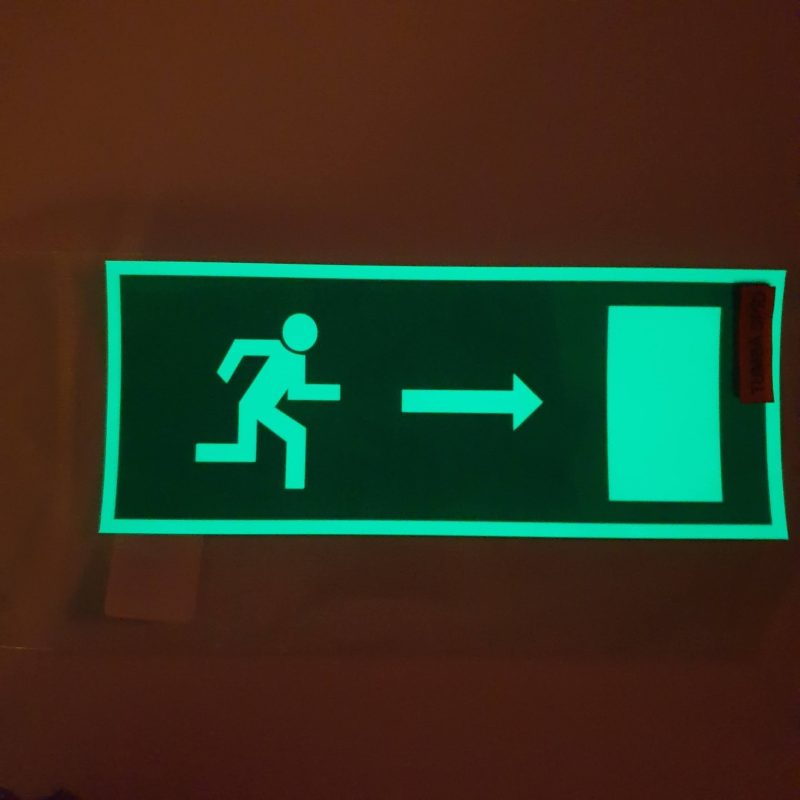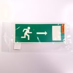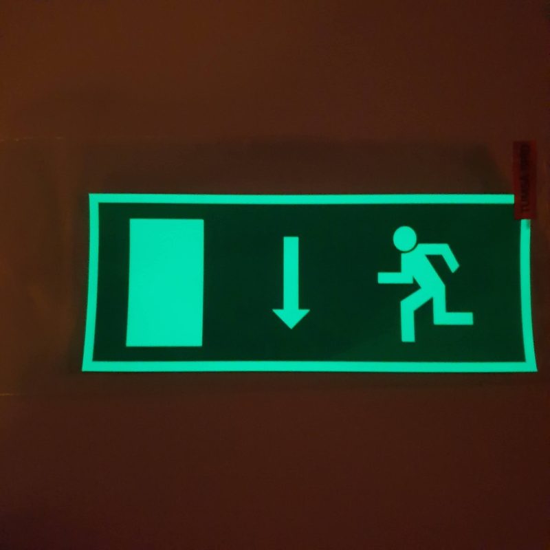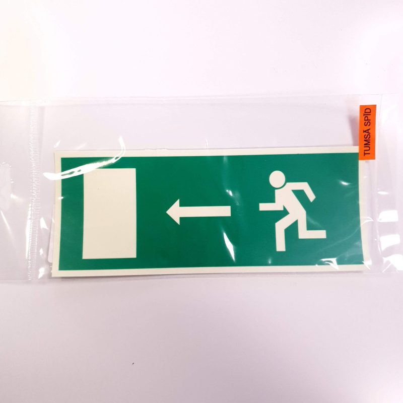 Dažādas evakuācijas uzlīmes. Evakuācijas izeja pa labi. Evakuācijas izeja lejā. Evakuācijas izeja pa kreisi.