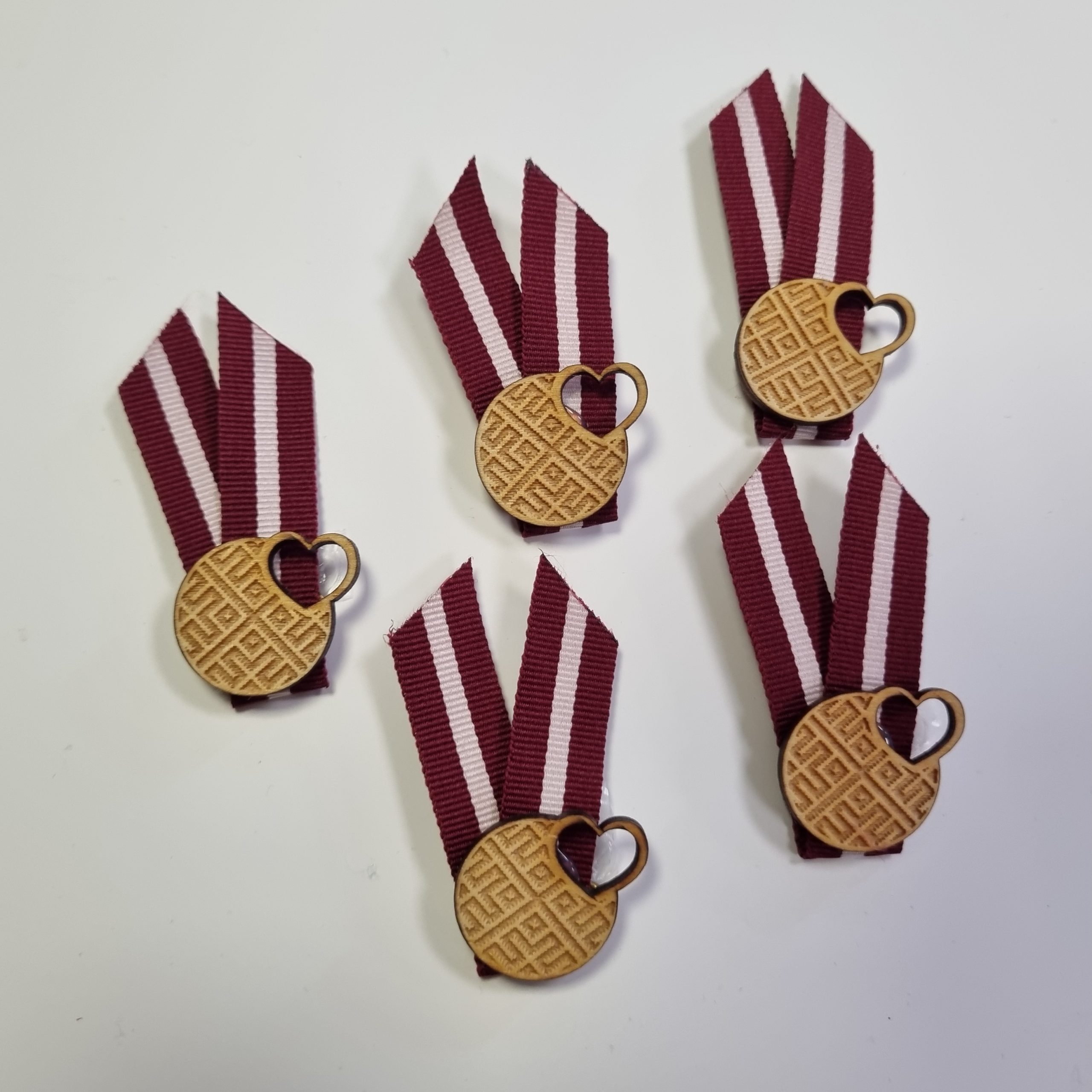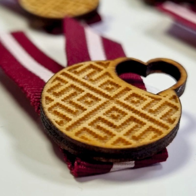 • Materiāls: Gravēts finieris + auduma lente + metāla saspraude