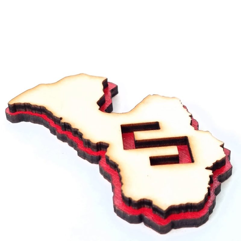 Suvenīrs ar Latvijas simboliku, kuru var piestiprināt pie ledusskapja vai kur citur. Krāsas kontrastējoši košas. Latvijas kontūra izgriezta ar lāzeri no finiera materiāla. Aizmugurē mazs magnēts, kas ļaus to piestiprināt pie magnētiskām virsmām.