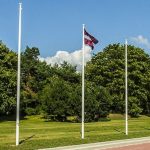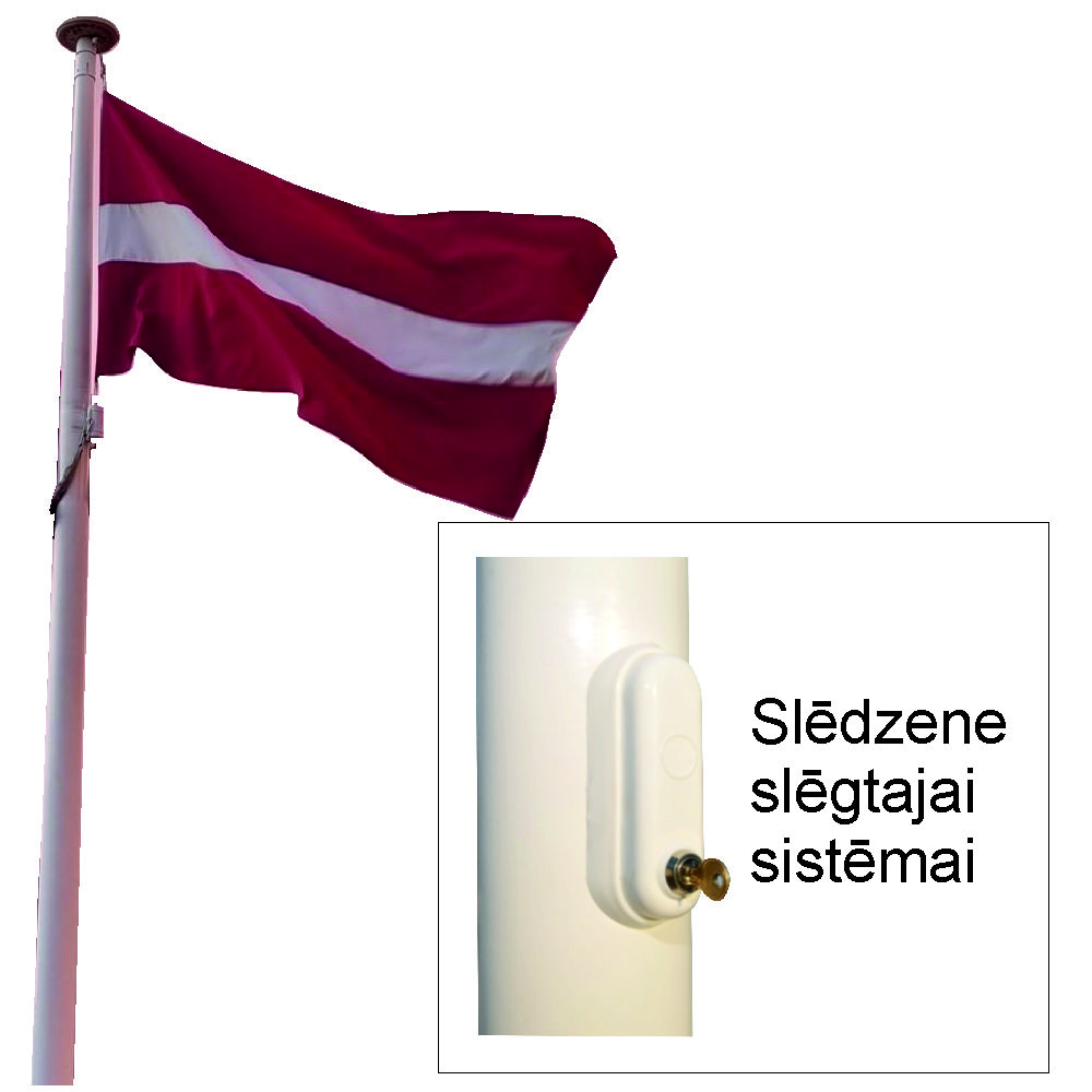 Stiklšķiedras karoga masts ar slēdzeni – slēptas auklas.