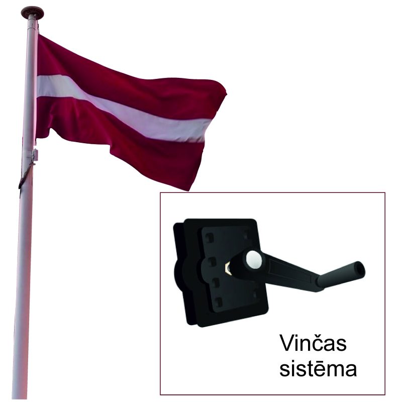 Viegli lietojama vinčas sistēma ļauj ātri pacelt un nolaist karogu, izmantojot ārpusē izvietotu kloķi-slēdzeni. Pēc masta nostiprināšanas, kloķis tiek noņemts, padarot sistēmu drošu pret nepiederošu personu darbībām. Karogs tiek nostiprināts pie iekšējās auklas, kas pasargā to no nolietošanās un saglabā vizuāli tīru masta ārpusi. Standarta karogu uzvilkšana joprojām iespējama manuāli, nodrošinot elastību atbilstoši Jūsu vajadzībām.