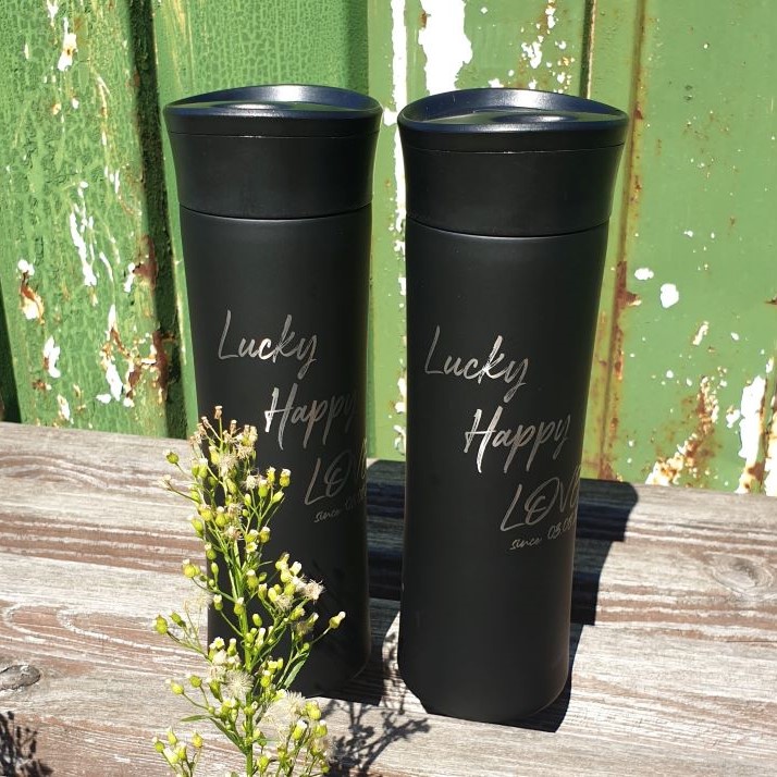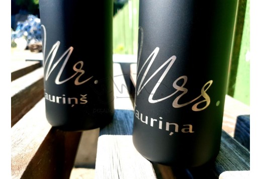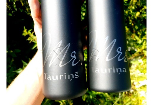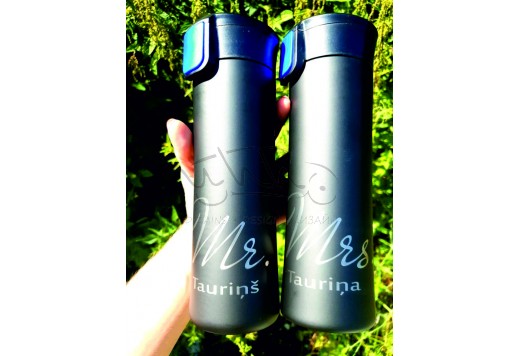 Cena noteikta par divām termokrūzēm ar abpusēju gravējumu un nelielu gravējumu uz termokrūžu korķīšiem.